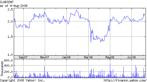 Based on performance in the first half of 2008, Clarient raised fiscal year 2008 revenue guidance to $62 – $66 million, from guidance of $56 – $60 million.