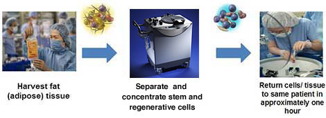 The device, cleverly named Celution System, automates a process that releases stem and regenerative cells residing within adipose (fat) tissue. The adipose tissue is taken from