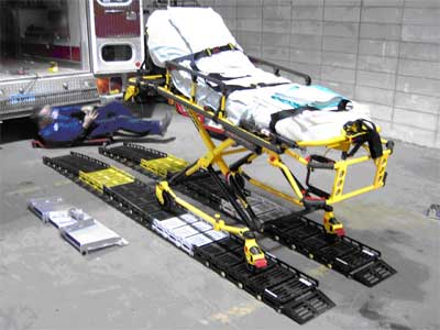In order to get a patient of this size into the ambulance, TranSafe has developed a Ramp System that can load gurneys without lifting, pulling or pushing (using a winch that attaches to the cot).