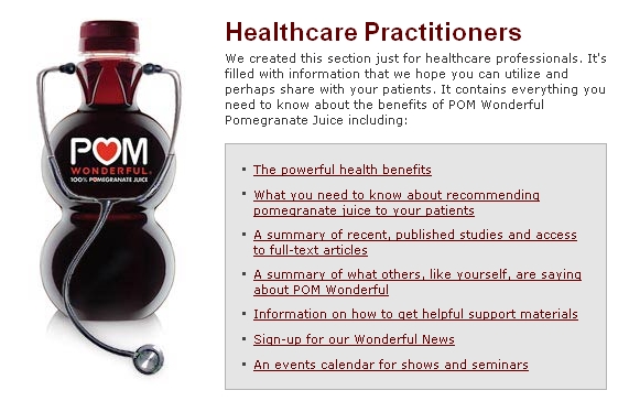We ran into the marketing folks at POM Wonderful at the AUA conference. The privately owned company has one of the most aggressive physician marketing programs in the juice industry.